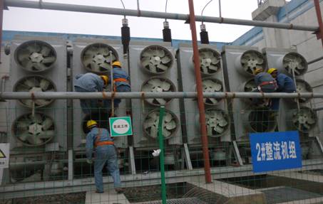 2015年度春檢工作的主要任務包括:對1-4#整流變機組72臺油冷卻風機檢修;對丁物ⅠⅡ回路全線巡查;對開關(guān)站瓷瓶防污閃清理等開展工作。
