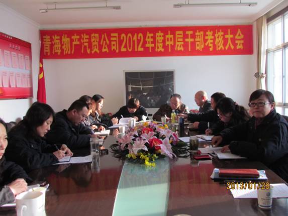 2013年1月28日,青海物產(chǎn)汽貿(mào)公司召開了2012年度中層干部考評會議,公司領(lǐng)導,各部、海東分公司負責人,公司中層副職和重點崗位、骨干員工代表共28人參加了會議。會議由黨支部書記黃曉梅主持,總經(jīng)理張宏民做了重要講話。