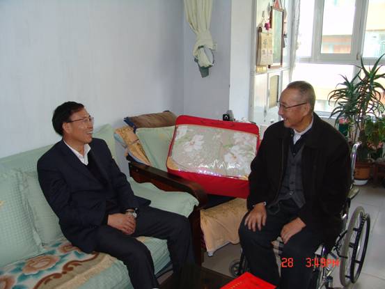 2013年1月28日,春節(jié)來臨之際,省委組織部王志明副部長(zhǎng)在省國資委黨委副書記毛占彪、物產(chǎn)集團(tuán)領(lǐng)導(dǎo)白家林、王仁芬的陪同下,走訪慰問了集團(tuán)系統(tǒng)生活困難老黨員肖振東。王志明副部長(zhǎng)親切地詢問肖振東的身體狀況、生活和家庭情況,發(fā)放了慰問金和慰問品,并希望他保重身體,愉快安度晚年。老黨員肖振東激動(dòng)地表示感謝黨組織的關(guān)懷,感謝上級(jí)領(lǐng)導(dǎo)的關(guān)心!