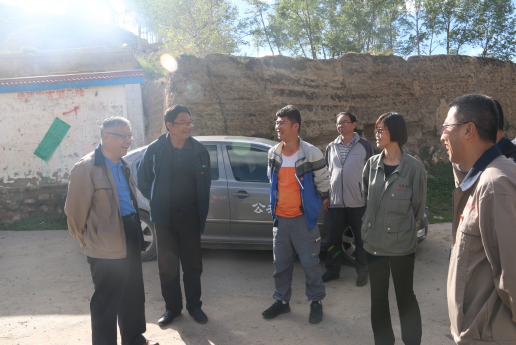 (圖為集團(tuán)公司調(diào)研組在湟源縣和平鄉(xiāng)草溝村與鄉(xiāng)黨委書(shū)記、村委書(shū)記交流扶貧攻堅(jiān)工作)