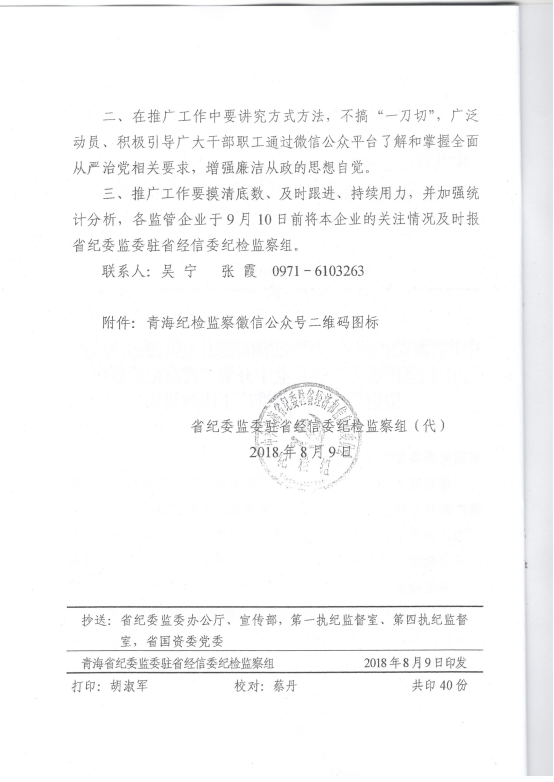 轉(zhuǎn)發(fā)《關(guān)于在省國資委監(jiān)管企業(yè)中開展“青海紀檢監(jiān)察”微信公眾號宣傳推廣工作》的通知