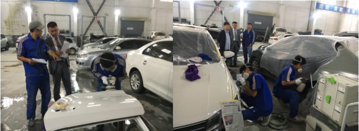 (物產(chǎn)汽貿(mào)公司 訊 崔燕飛、杜慶華/文攝)為進(jìn)一步提升公司售后維修人員業(yè)務(wù)水平,提高公司維修工人崗位技能與實(shí)際操作能力,從而更好的服務(wù)于客戶車輛的維修工作,為顧客安全出行提供有力保障。9月16日上午,總經(jīng)理助理、售后服務(wù)總監(jiān)杜慶華帶領(lǐng)售后管理人員,在朝陽車間對(duì)售后服務(wù)部即將轉(zhuǎn)正的4名漆工學(xué)徒進(jìn)行了現(xiàn)場(chǎng)考核。