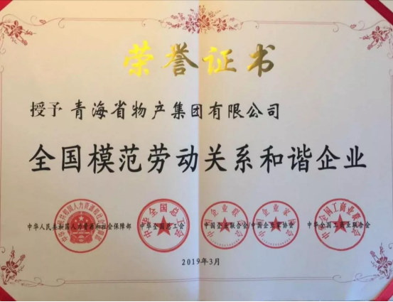 由青海省人力資源和社會(huì)保障廳、青海省總工會(huì)、青海省企業(yè)聯(lián)合會(huì)/企業(yè)家協(xié)會(huì)、青海省工商業(yè)聯(lián)合會(huì)共同推薦申報(bào),青海省物產(chǎn)集團(tuán)有限公司、青?;ブ囡乒煞萦邢薰?、正平路橋建設(shè)股份有限公司榮獲全國(guó)模范勞動(dòng)關(guān)系和諧企業(yè)光榮稱號(hào),西寧經(jīng)濟(jì)技術(shù)開發(fā)區(qū)東川工業(yè)園區(qū)榮獲全國(guó)模范勞動(dòng)關(guān)系和諧工業(yè)園區(qū)光榮稱號(hào),受到了國(guó)家人力資源和社會(huì)保障部、中華全國(guó)總工會(huì)、中國(guó)企聯(lián)、全國(guó)工商聯(lián)的隆重表彰。