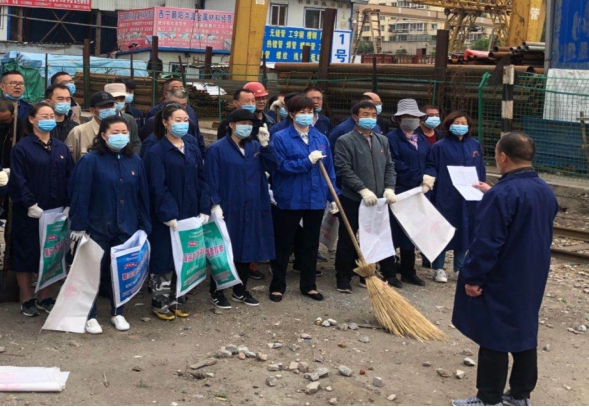 在三名黨支部書記的帶領(lǐng)下,黨員們分工明確、有條不紊,延鐵路專用線由南向北對積存垃圾、建筑垃圾、雜草進行清除?;顒又?,黨員們充分發(fā)揚不怕臟、不怕累的精神,有的掃地、有的撿拾垃圾、有的拔除雜草,呈現(xiàn)出一片熱火朝天的勞動景象。經(jīng)過一個多小時的勞動,鐵路專用線兩側(cè)垃圾得到徹底地清除。